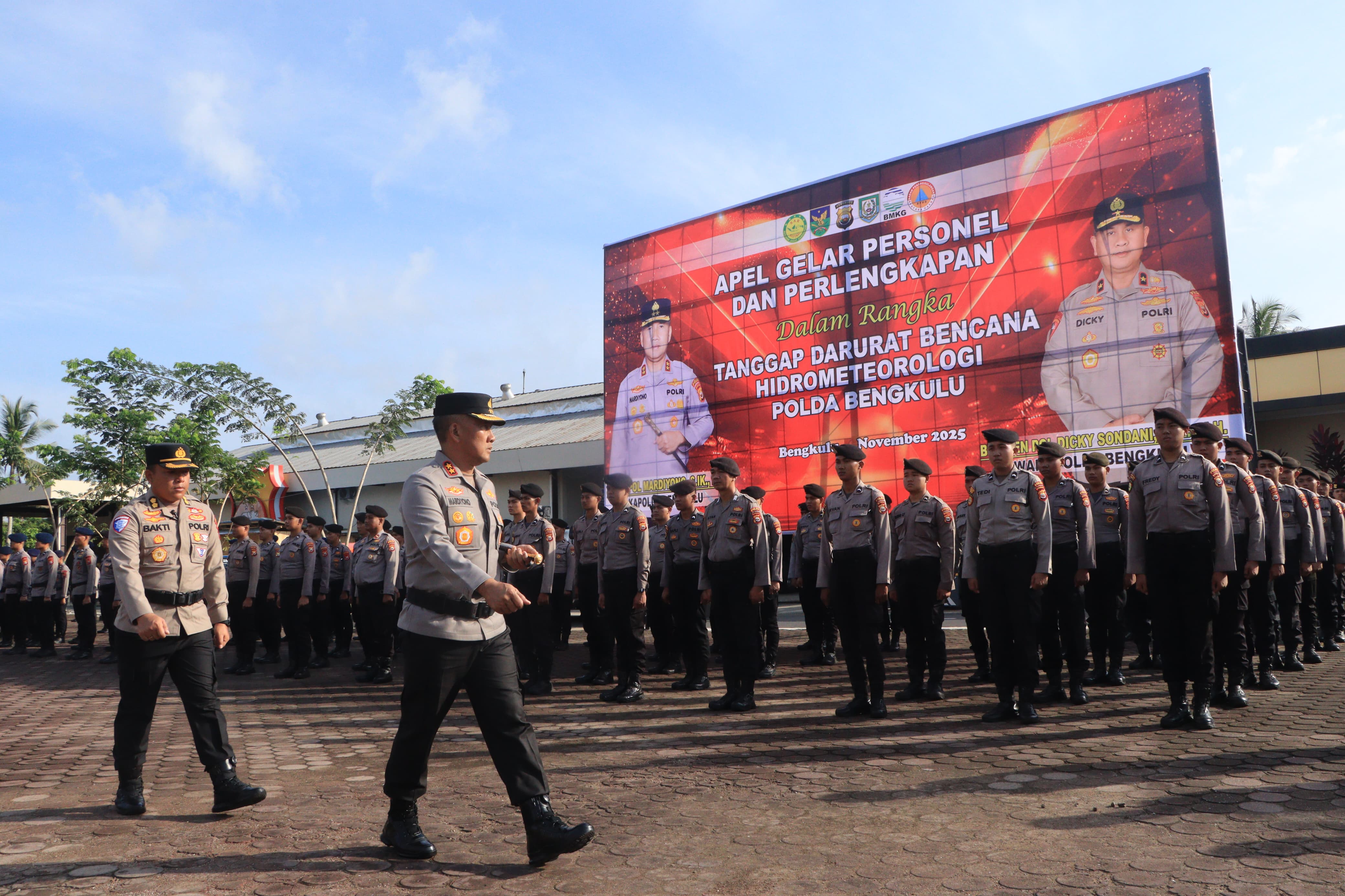 Dalam amanatnya, Kapolda Bengkulu menegaskan kesiapsiagaan seluruh personel menjadi kunci utama dalam menghadapi bencana hidrometeorologi seperti banjir, tanah longsor, dan angin puting beliung.