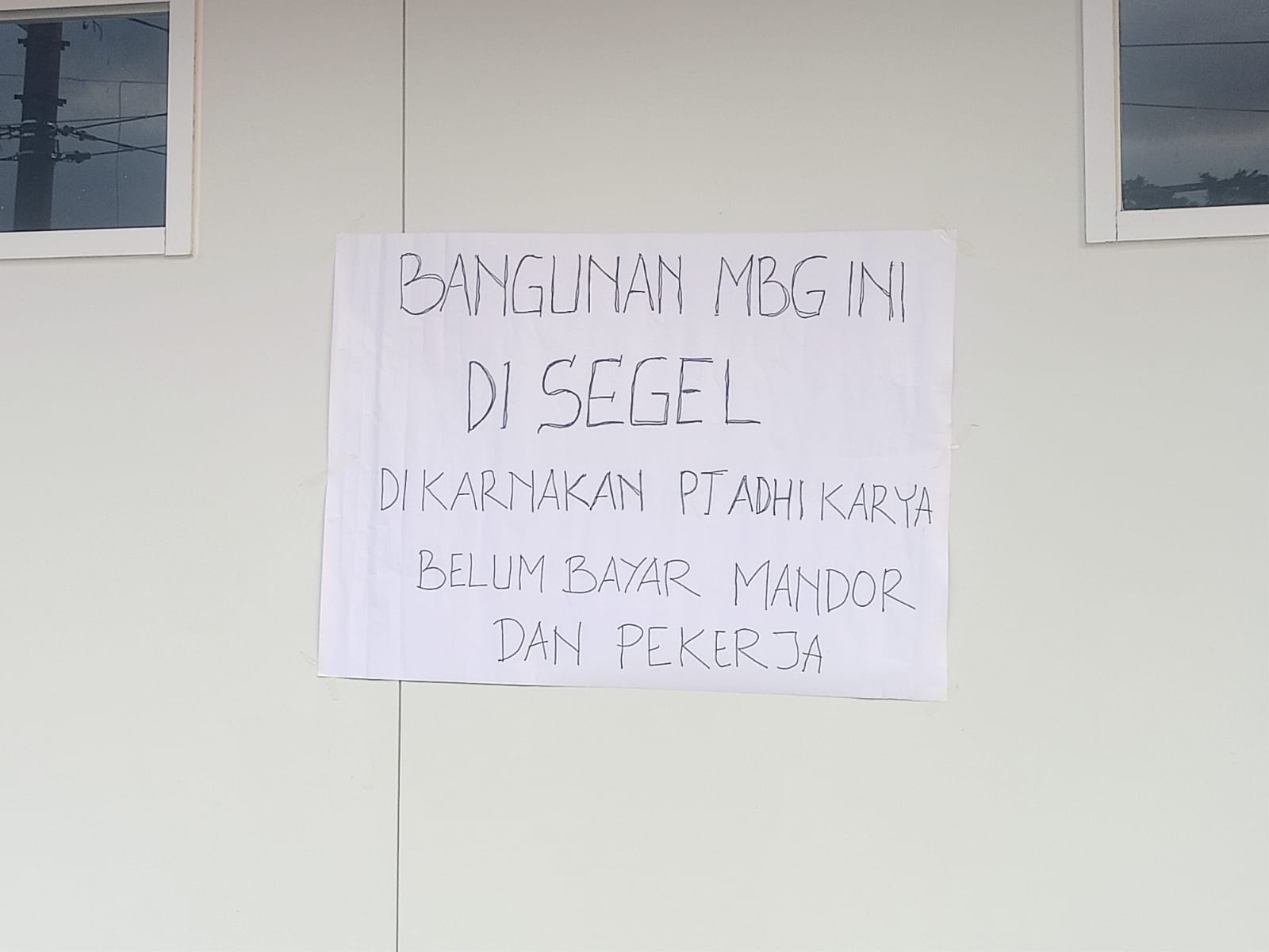 Ada 25 unit SPPG MBG yang telah dibangun dengan progres 80 persen, disegel para tukang yang belum menerima upah atau haknya.