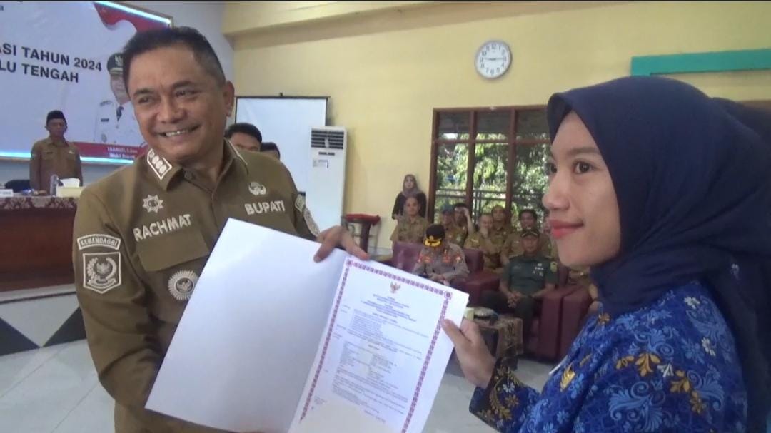BENGKULU TENGAH, RBTV.DISWAY.ID - Pemerintah Bengkulu Tengah membagikan Surat Keputusan (SK) pengangkatan Calon Pegawai Negeri Sipil (CPNS), bertempat di Aula Puncak Tahura Hotel pada Senin (5/5/2025) siang.