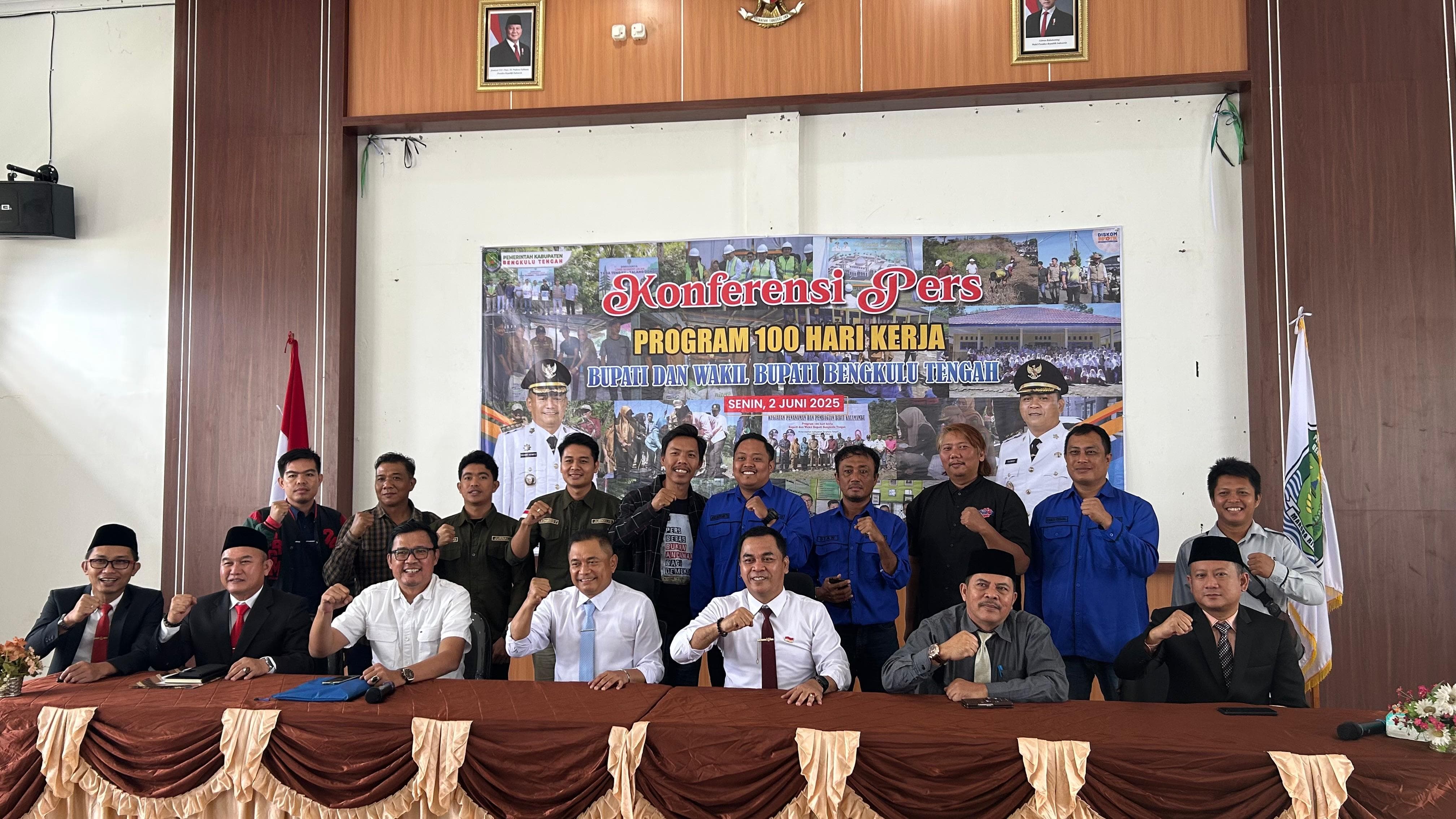 Dalam konferensi pers yang dihadiri belasan wartawan dari berbagai media ini, Bupati Bengkulu Tengah Rachmat Riyanto menyampaikan capaian Program 100 Hari Kerja serta prospek kedepannya nanti.