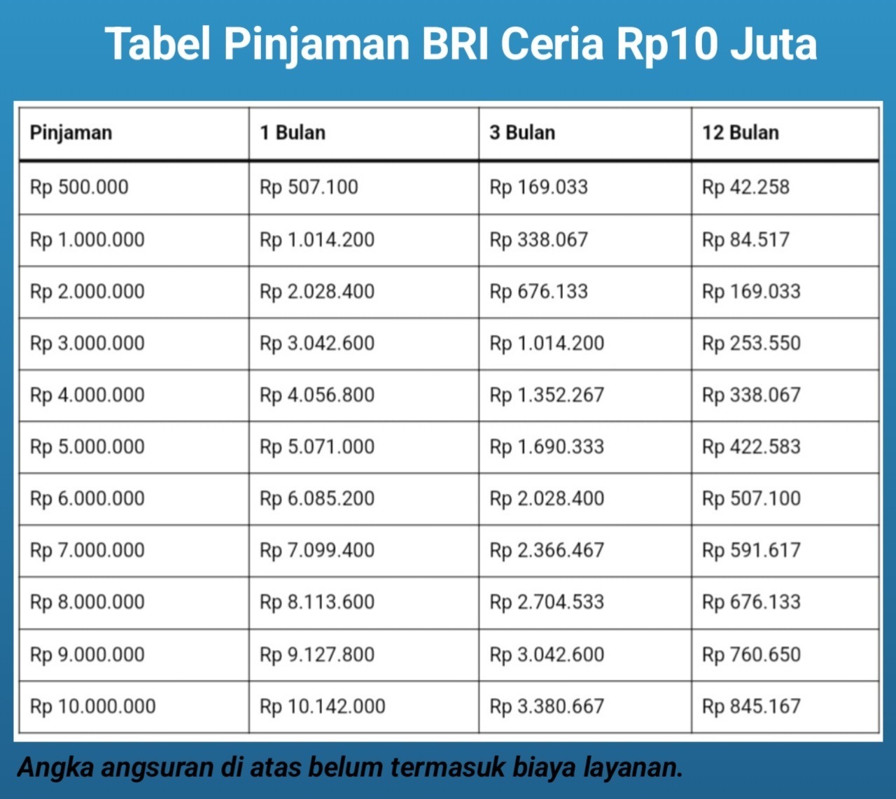 Tabel Pinjaman Online BRI Ceria, Plafon Rp 5-10 Juta Tenor Tembus 12 Bulan, Cek Angsurannya