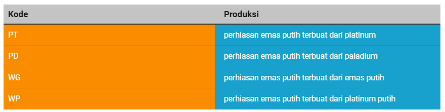 Selain kode-kode huruf yang disebutkan di atas, terdapat beberapa kode huruf pada perhiasan emas putih yang memiliki arti berbeda. Berikut penjelasannya.