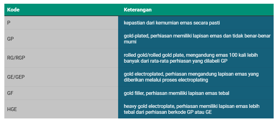 Di pasar emas global sendiri, kode huruf tertera untuk menyatakan kadar kemurnian emas. Berikut penjabarannya.