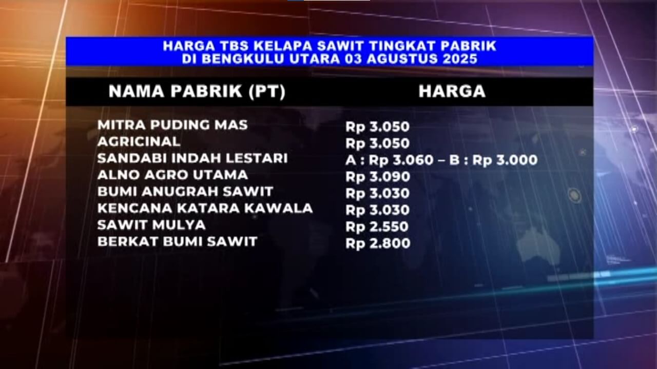 Update Harga TBS Kelapa Sawit di Bengkulu Utara Pekan Pertama Agustus 2025