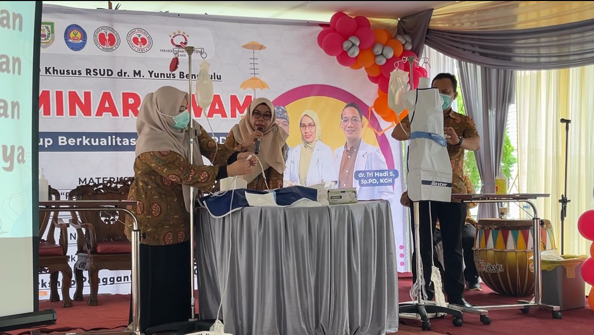 Kegiatan seminar ini dibuka langsung oleh Direktur RSUD M. Yunus Bengkulu dr. Ari Mukti Wibowo serta puluhan pasien dan keluarga pasien penderita gagal ginjal, serta tenaga kesehatan. Disampaikan Ari, seminar dengan mengusung tema “Hidup Berkualitas Dengan CAPD” ini, bertujuan agar mendapatkan infromasi yang sama terkait dengan metode cuci darah CAPD, yang memang rutin digelar oleh pihak rumah sakit.