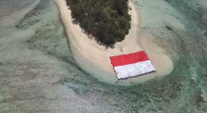 Untuk Indonesia, Basarnas Kibarkan Bendera di Bawah Laut dan Bentang Bendera Raksasa di Pulau Tikus