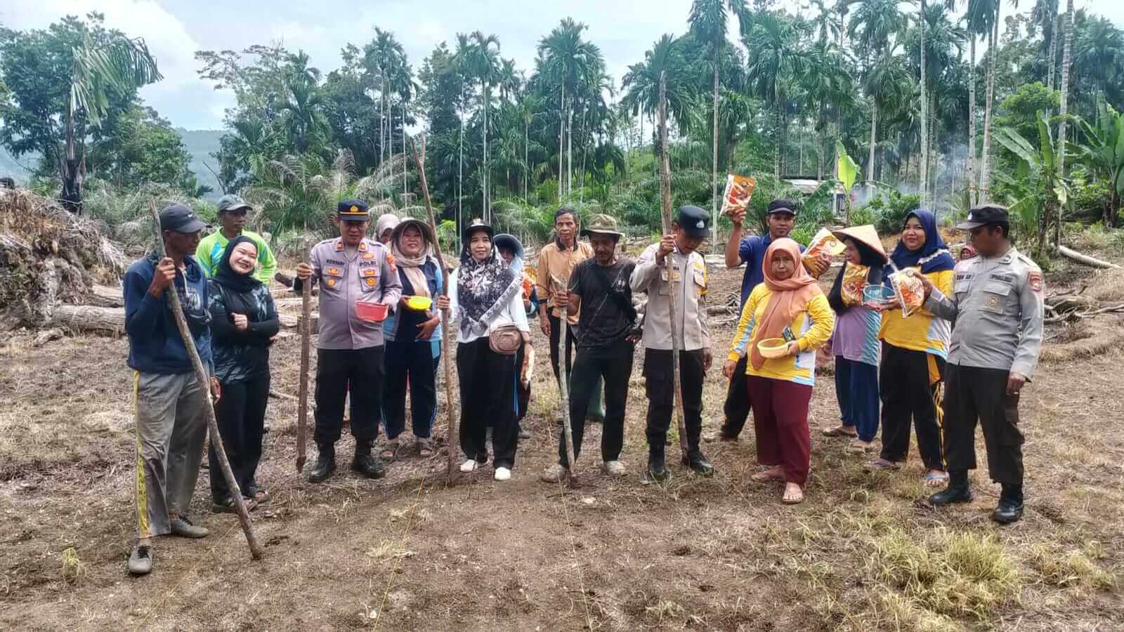 Didampingi Bhabinkamtibmas Polres Kaur Polsek Nasal Bripka Hendra, warga Desa Air Palawan melaksanakan tanam perdana jagung bhayangkara di atas lahan milik warga bernama Idiantato(55).