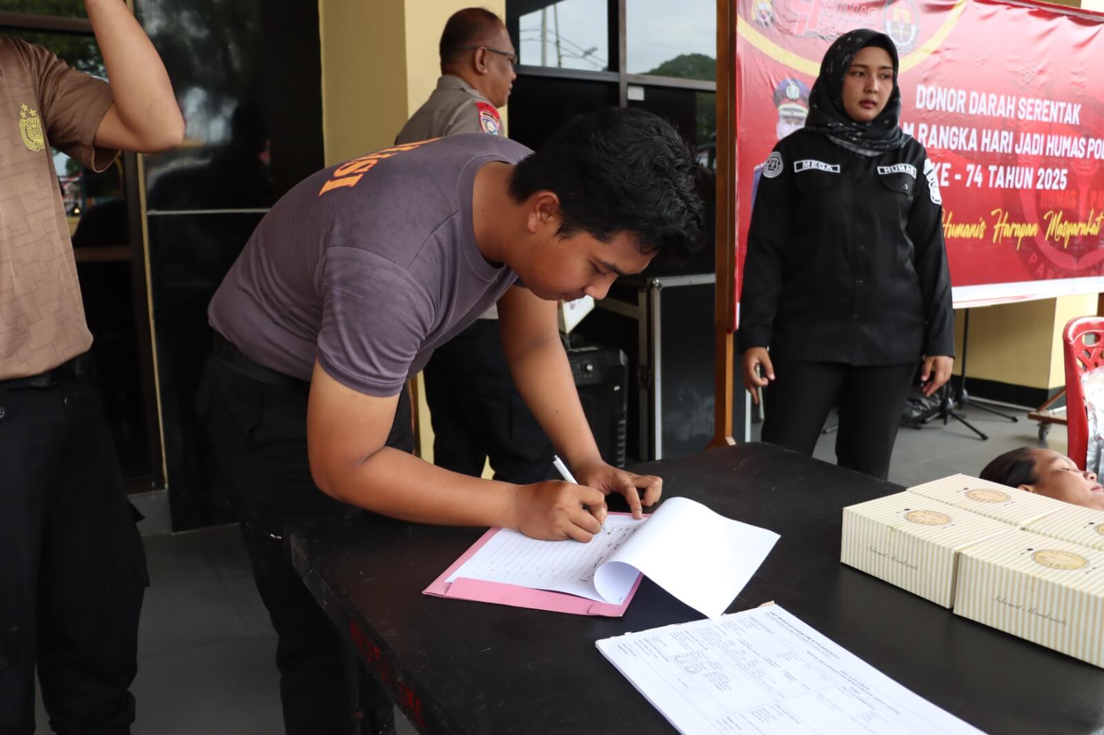 BENGKULU, RBTV.DISWAY.ID - Dalam rangka memperingati Hari Jadi Humas Polri ke-74 Tahun 2025, Seksi Humas Polresta BENGKULU menggelar kegiatan Donor Darah Serentak bekerja sama dengan Palang Merah Indonesia (PMI) Kota BENGKULU, yang dilaksanakan di Selasar Polresta BENGKULU, Rabu (22/10/2025).