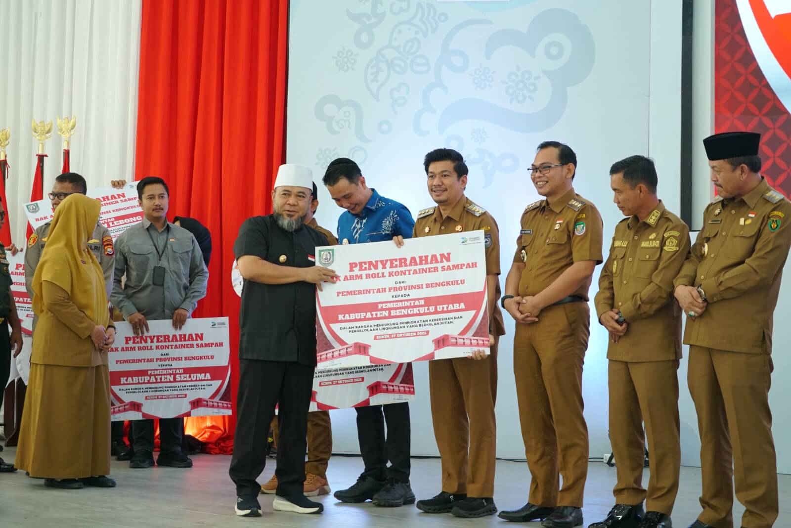 Gubernur Bengkulu Helmi Serahkan 102 Unit Kontainer Sampah dan Truk Sampah ke Pemkot dan Pemkab