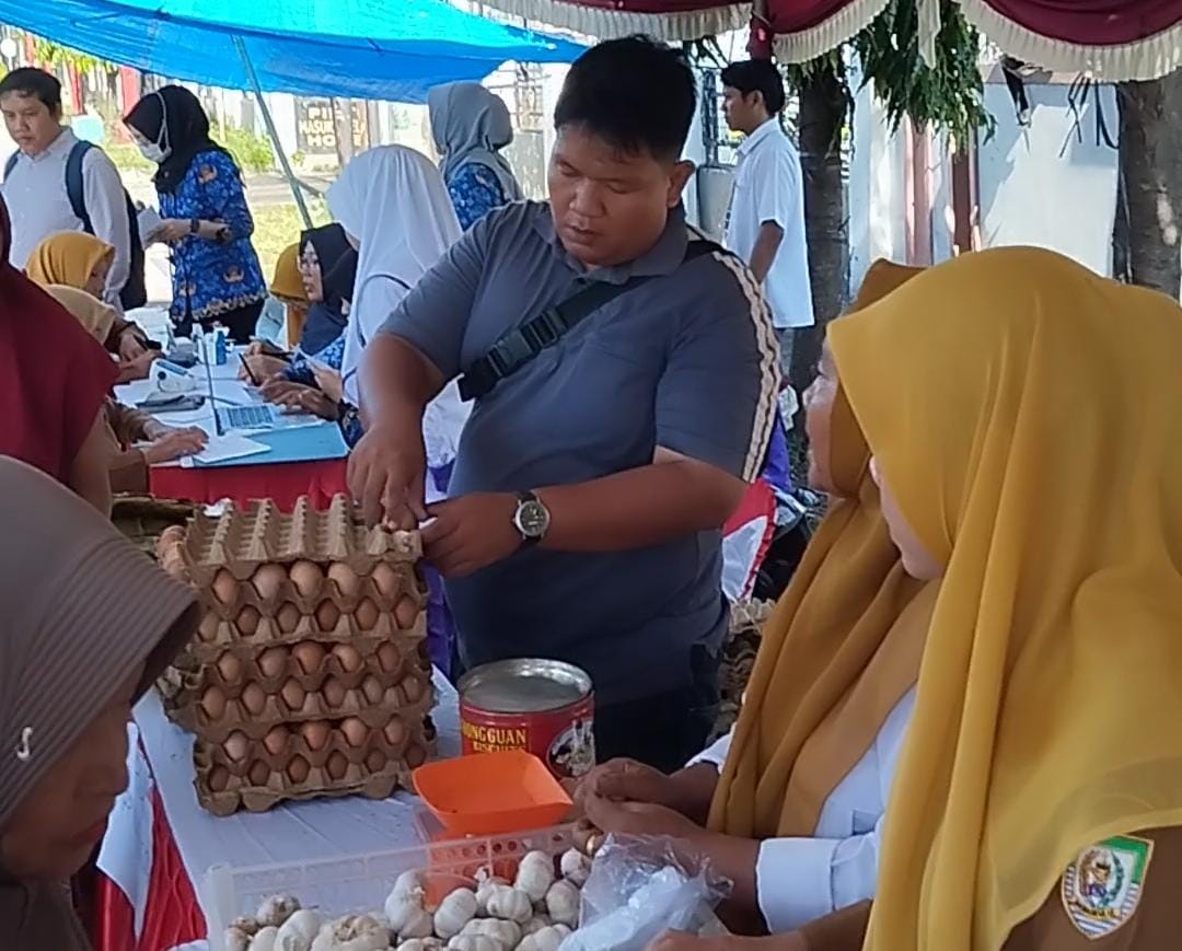 Adapun kebutuhan pokok yang dijual di pasar murah ini seperti, telur, minyak, ayam, bawang, gula dan lainnya dengan harga yang terjangkau.