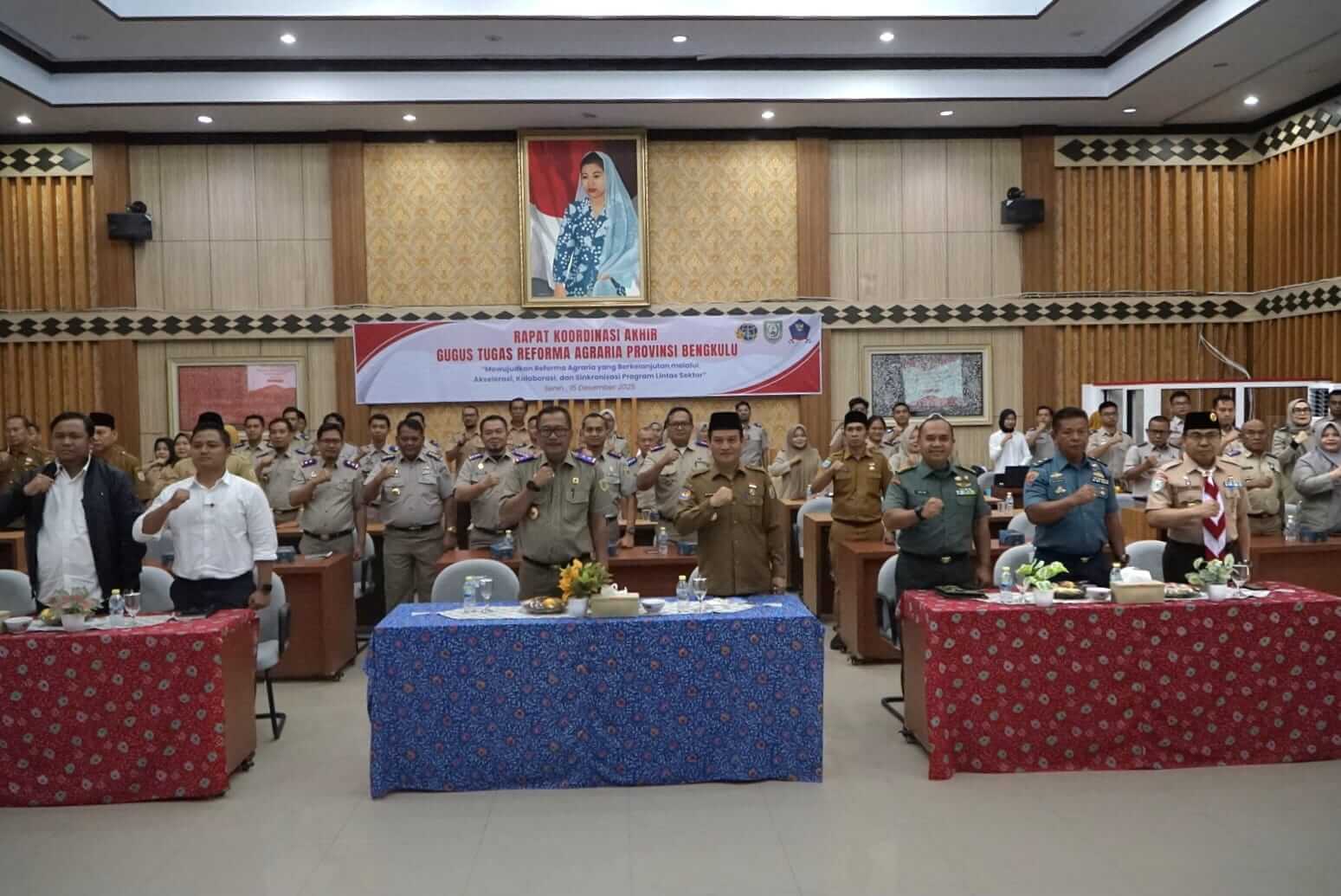 Hal tersebut disampaikan dalam Rapat Koordinasi (Rakor) Akhir Tim Gugus Tugas Reforma Agraria (GTRA) Provinsi Bengkulu Tahun 2025 yang digelar di Aula Merah Putih Kantor Gubernur Bengkulu, Senin (15/12).