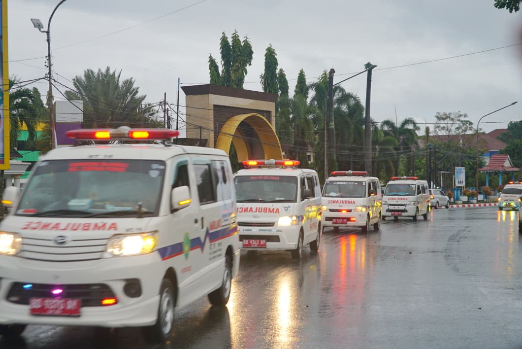 Untuk diketahui 100 unit mobil ambulans dikirim dari Bengkulu dan dibagi ke tiga wilayah. Ambulans tersebut juga membawa kebutuhan pokok.