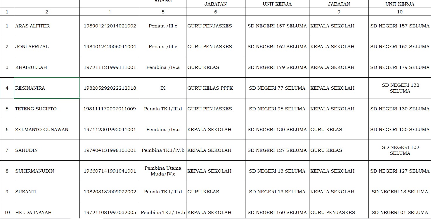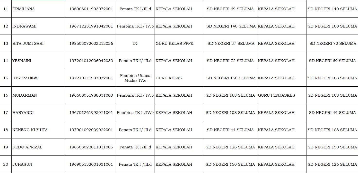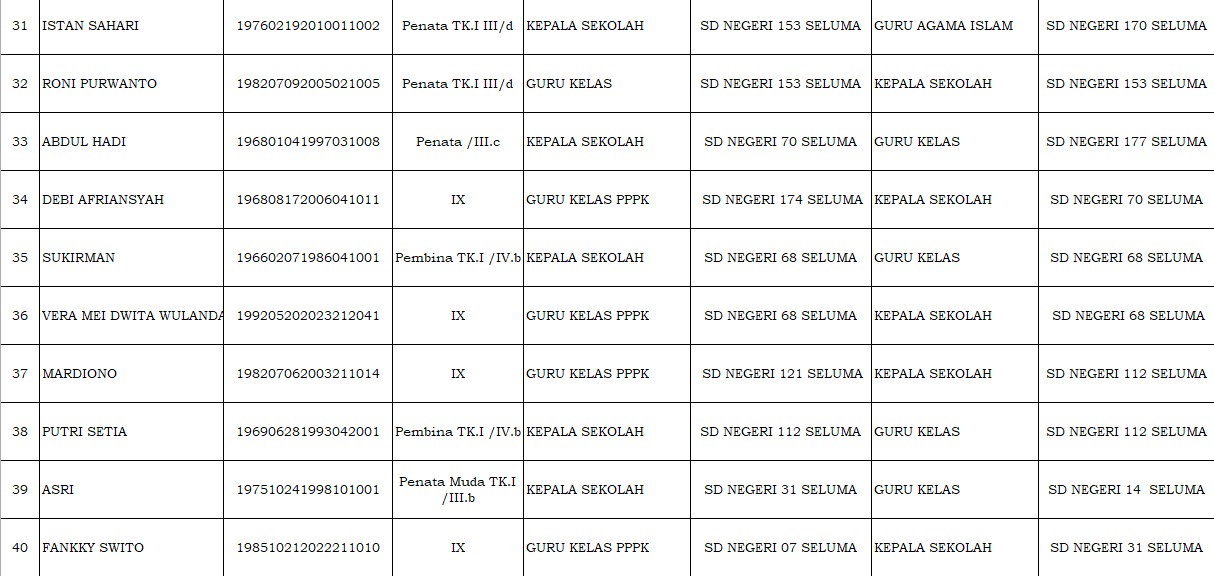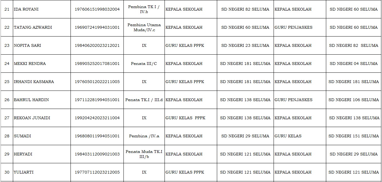 Daftar Nama 149 Kepala Sekolah dan Guru SD-SMP Kabupaten Seluma yang Terkena Mutasi