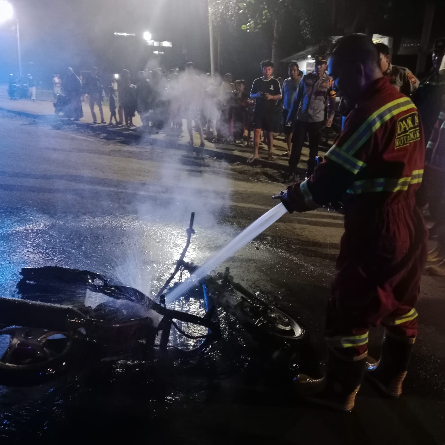 BENGKULU, RBTVDISWAY.ID - Jalan KZ. Abidin Kelurahan Belakang Pondok Kota Bengkulu Jumat malam heboh. Penyebabnya ada yang membakar sepeda motor.