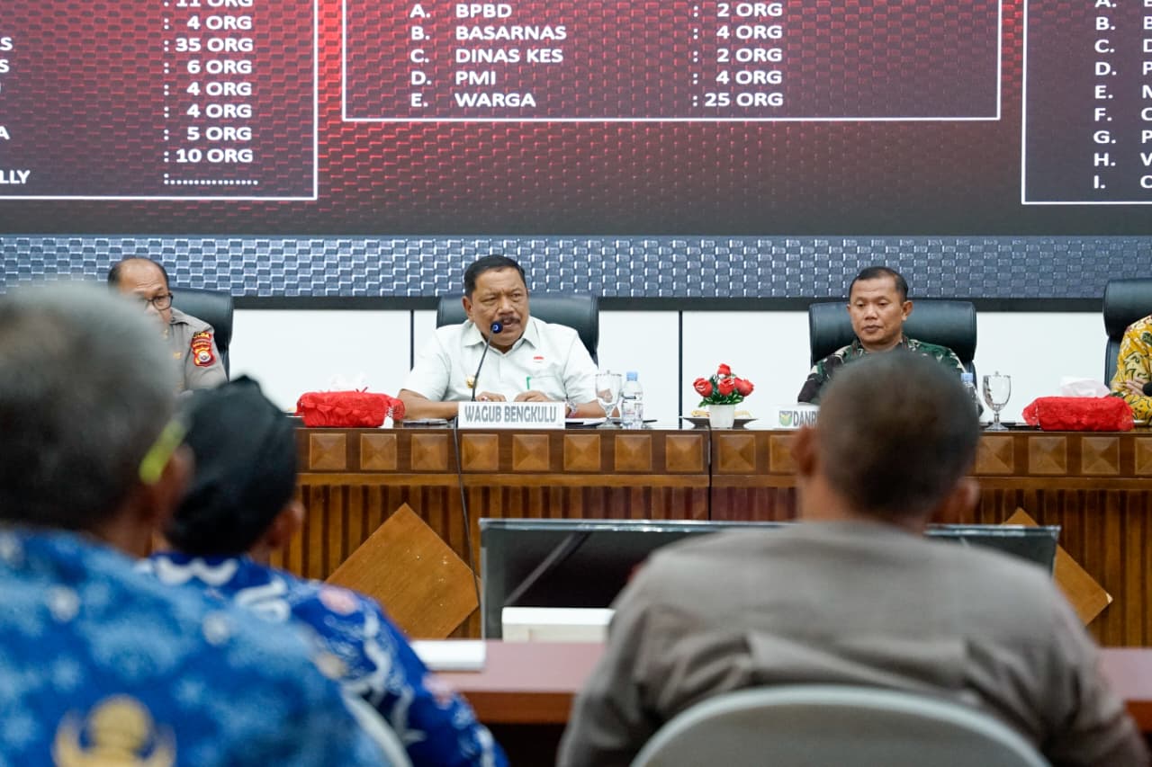 Bengkulu, RBTVCamkoha.com - Pemerintah Provinsi Bengkulu bersama Korem 041/Gamas menggelar Rapat Koordinasi Latihan Kesiapsiagaan Nasional Bencana Alam Megathrust Kogabwilhan I Tahun 2026 dikantor Gubernur Bengkulu, Kamis (9/4).