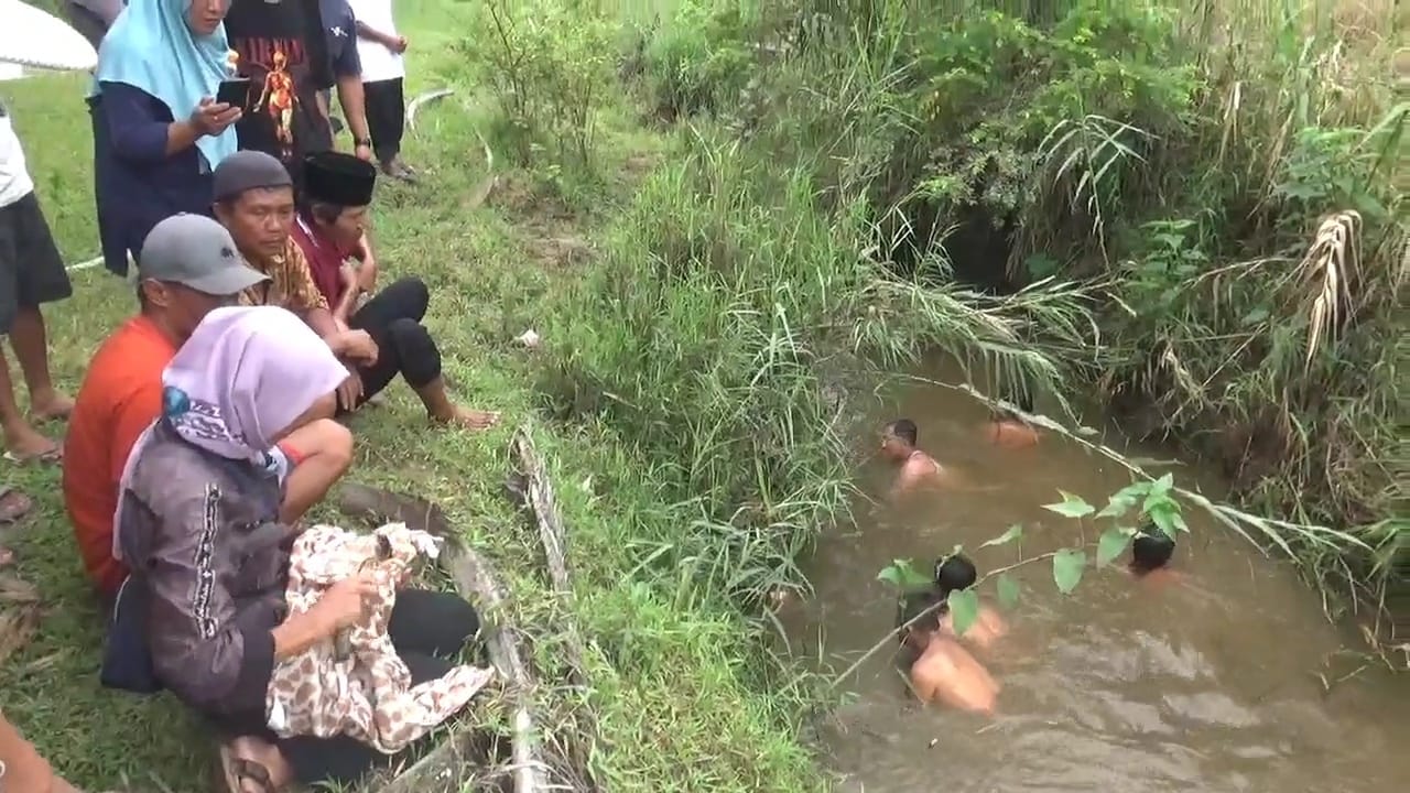 Akibatnya korban terseret oleh arus air sungai yang cukup deras kemudian korban terseret semakin jauh ke tengah.