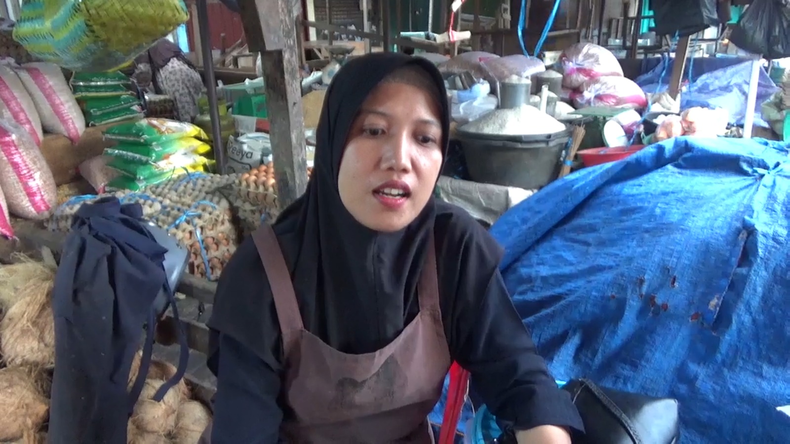 Para pedagang mengaku, penjualannya menurun drastis. biasanya, rumah makan membeli empat kilogram kelapa, namun kini hanya membeli dua kilogram saja.