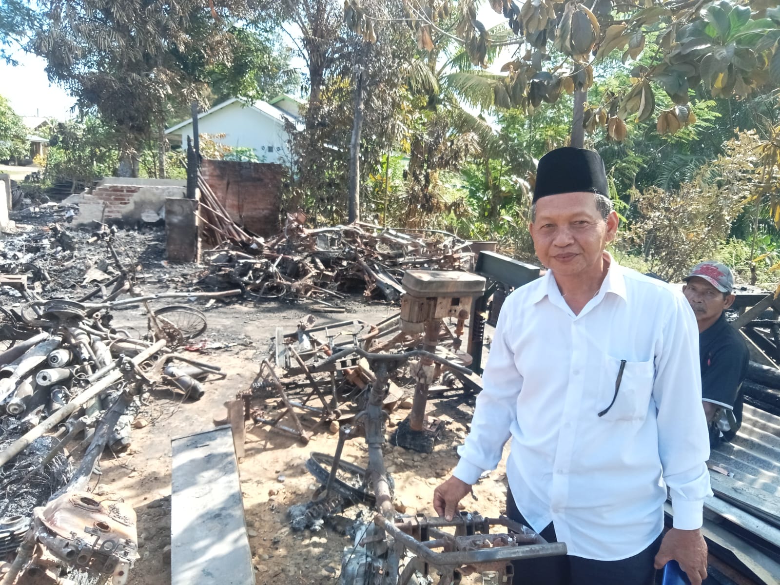 Beruntung tidak ada korban jiwa dalam peristiwa kebakaran ini, namun pemilik bengkel usai diberitahu warga langsung bergegas berupaya menyelamatkan sepeda motor konsumennya, hingga tangan kanan, pundak dan keningnya mengalami luka bakar.