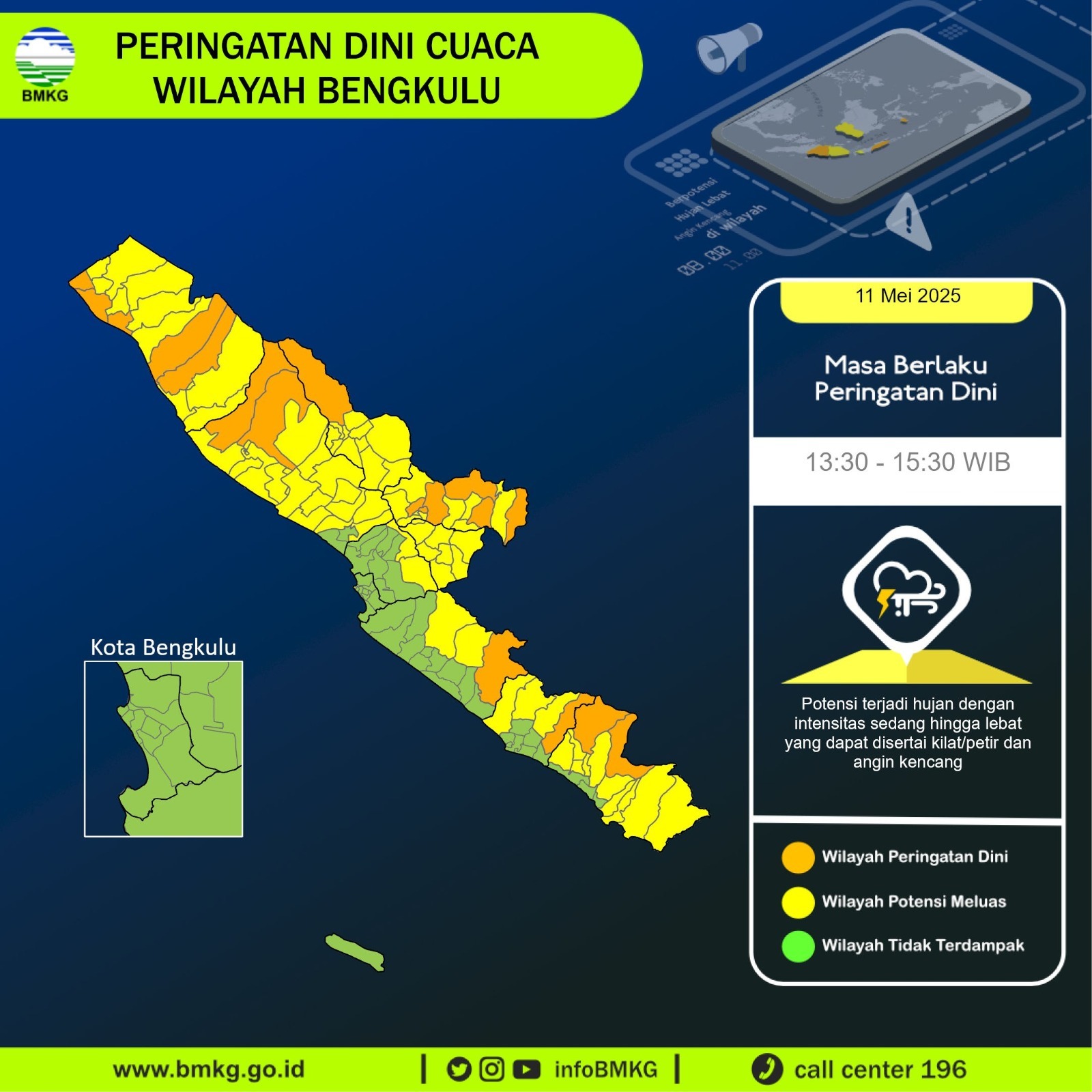 Berdasarkan pantauan tersebut BMKG sudah menyampaikan peringatan dini sejak jam 15.30 WIB untuk warga kota Bengkulu, sedangkan wilayah lainnya sejak jam 13.30 WIB bahwa ada potensi cuaca buruk termask hujan dan angin kencang.