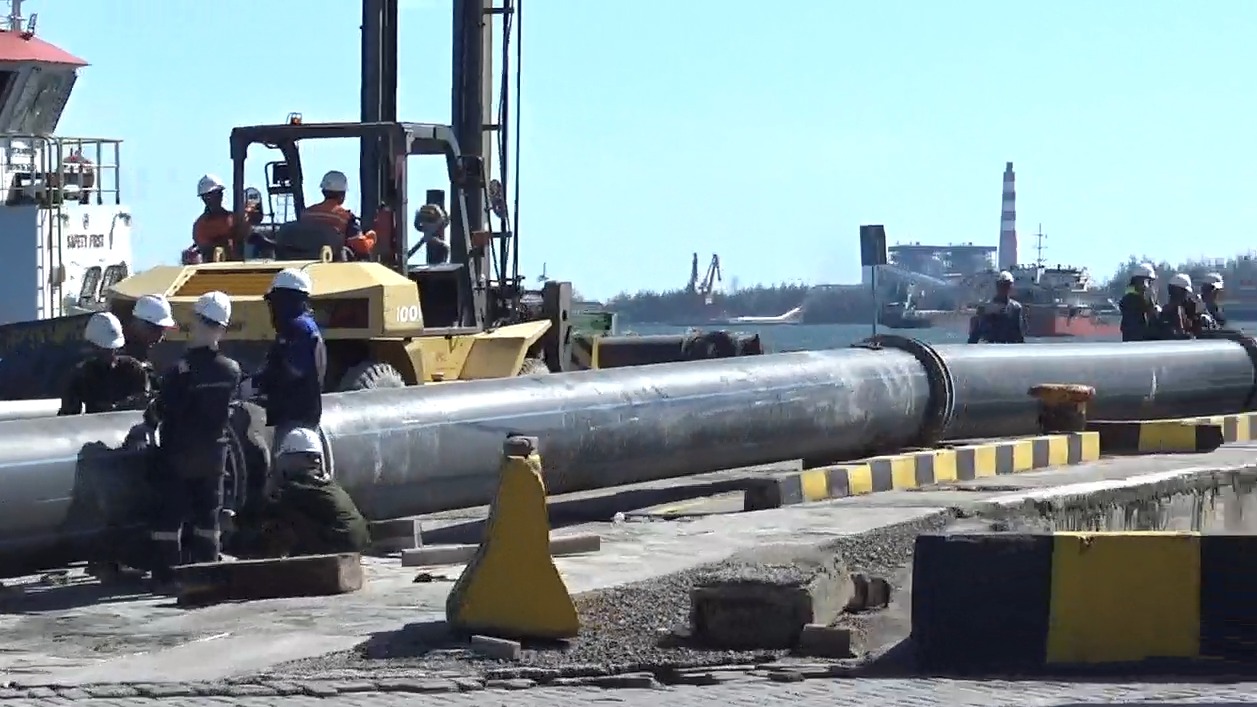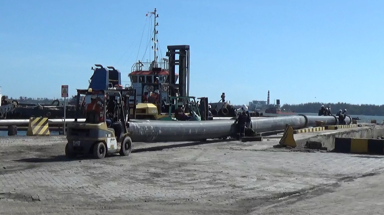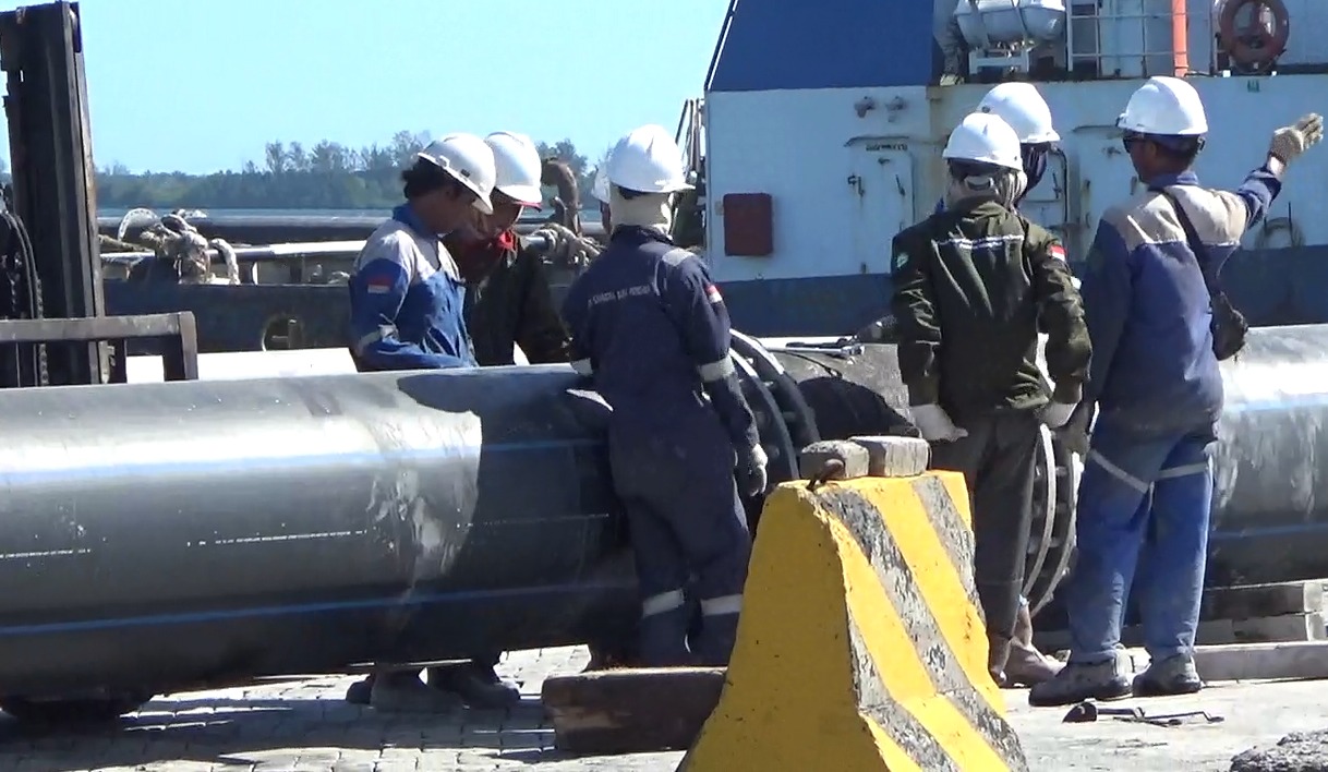 Proses pemasangan pipa untuk proses pengerukan alur pelabuhan--