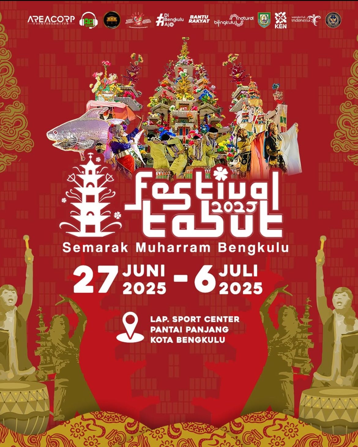 BENGKULU, RBTV.DISWAY.ID - Tanggal pembukaan Festival Tabut 2025 di Sport Center Pantai Panjang Bengkulu, ada 35 tenda dan dapur umum gratis.