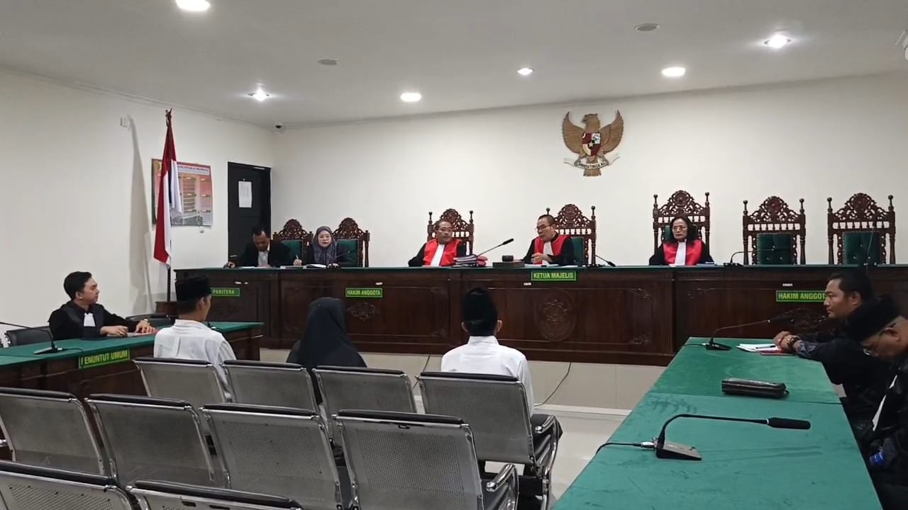 "Menyatakan tiga terdakwa bersalah sebagaimana dakwaan Subsdier Penuntut Umum," ucap ketua majelis saat persidangan.