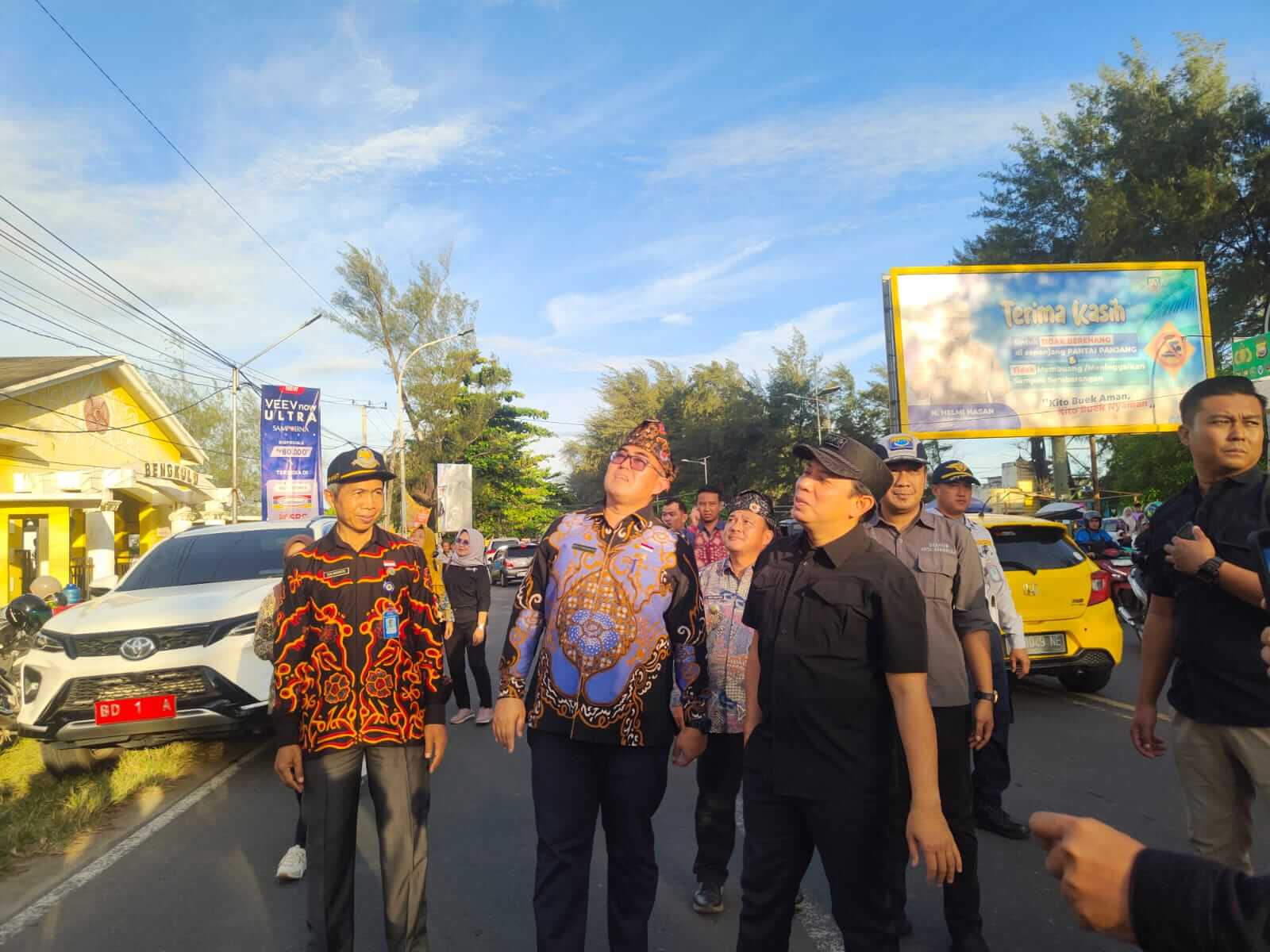 BENGKULU, RBTVDISWAY.ID - Wali Kota Bengkulu Dedy Wahyudi bersama Plt Dinas Perhubungan Medy Pebriansyah, memantau langsung proses pemasangan lampu jalan di kawasan Pantai Panjang pada Kamis (19/6) sore.