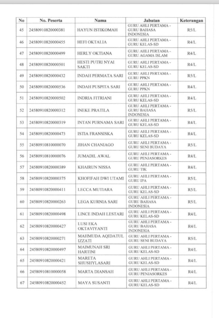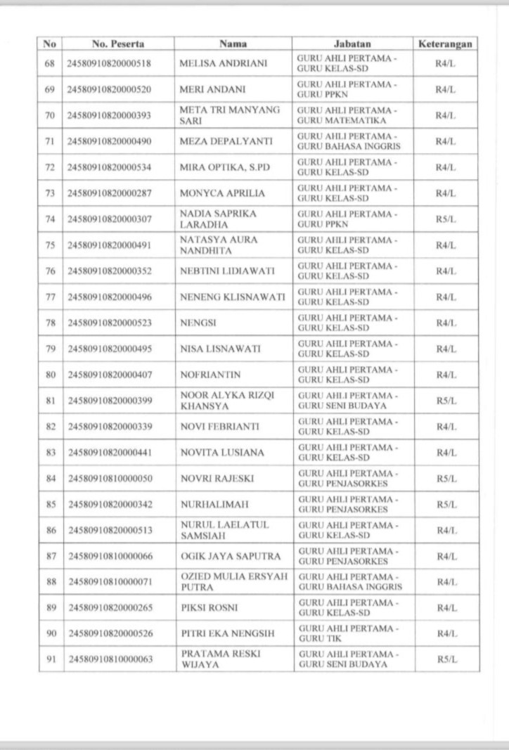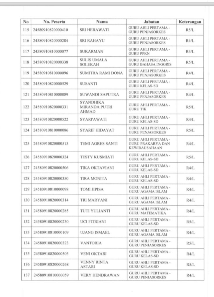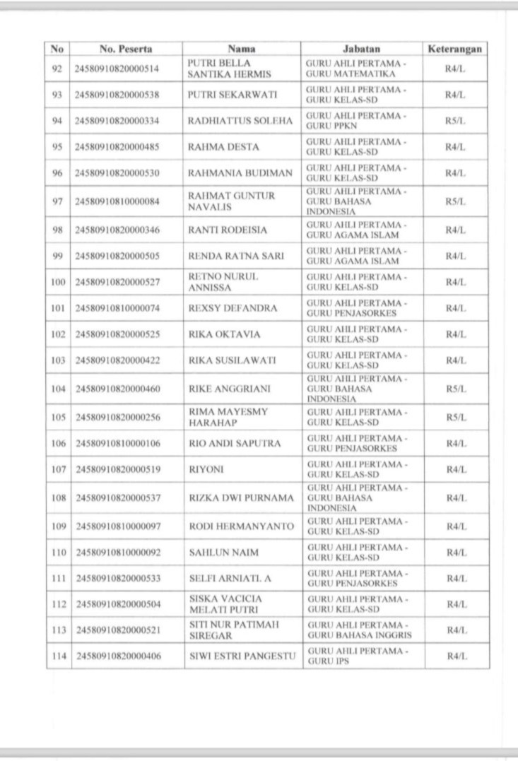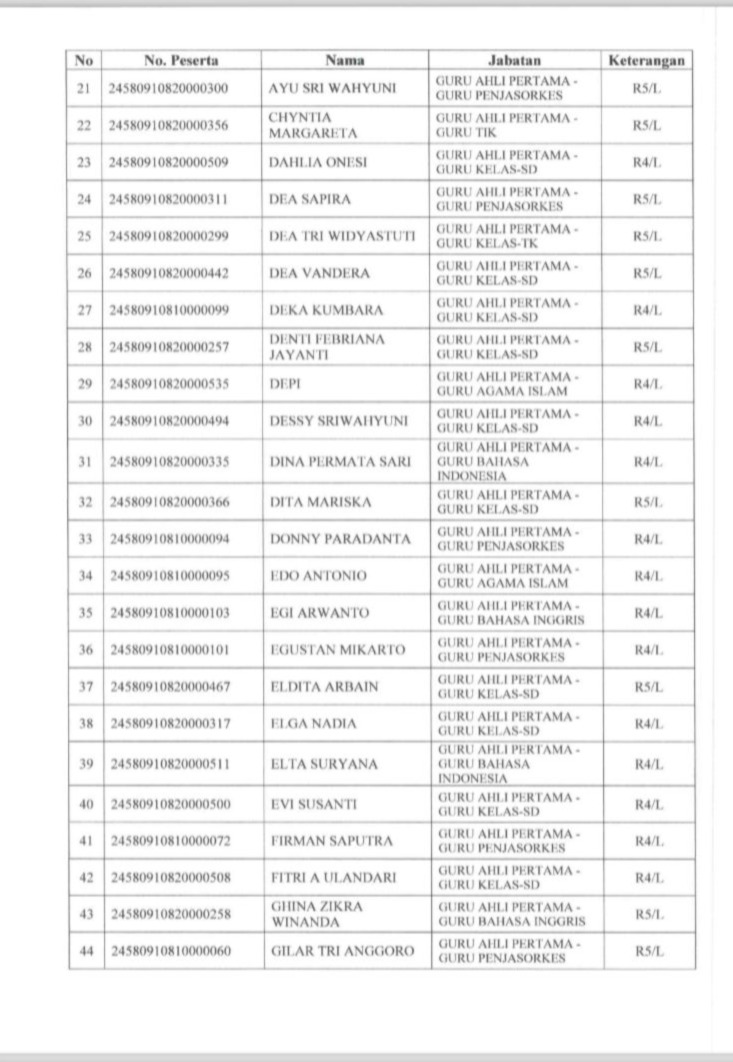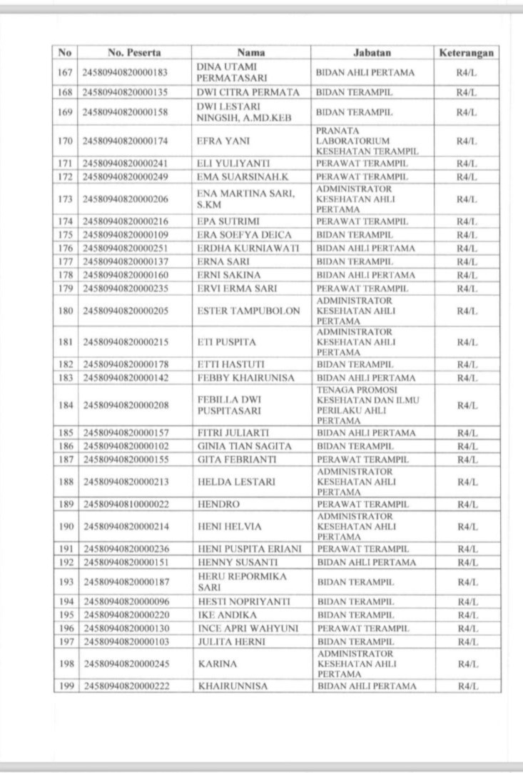 Berdasarkan hasil seleksi yang disampaikan oleh Badan Kepegawaian Negara atau BKN dan ditetapkan mlalui surat dari Sekretaris Daerah Bengkulu Tengah, berikut ini beberapa daftar peserta yang dinyatakan lulus seleksi kompetensi PPPK dan berhak melanjutkan ke tahap pemberkasan, berikut daftar nama lengkapnya (bagian 1):