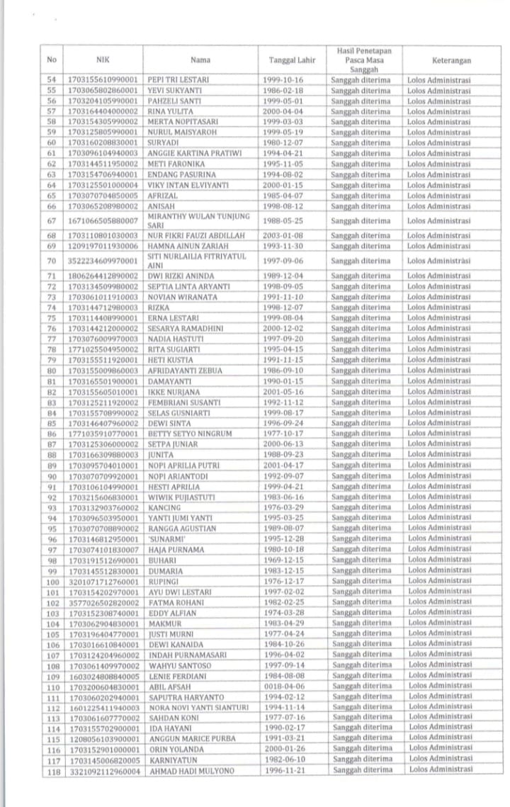 Akhirnya, yang dinanti-nanti oleh para pelamar Pegawai Pemerintah dengan Perjanjian Kerja (PPPK) tahap II di lingkungan Pemerintahan Daerah Kabupaten Bengkulu Utara formasi tahun 2024 pengumuman hasil seleksi administrasi setelah penetapan keputusan pasca masa sanggah keluar juga.