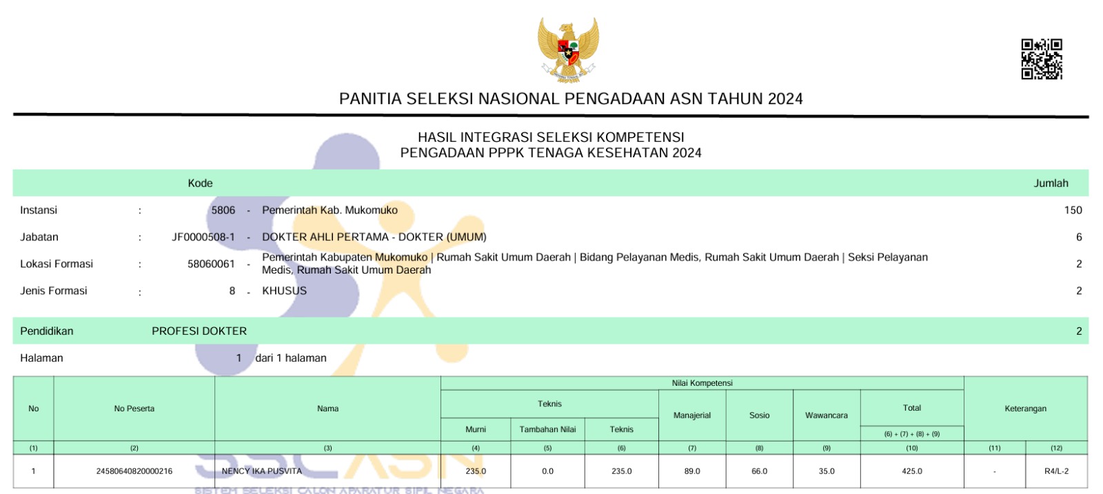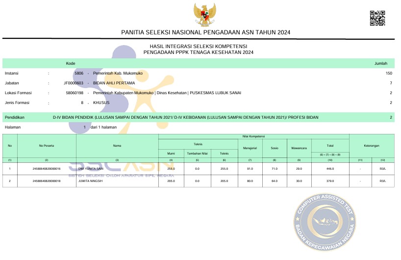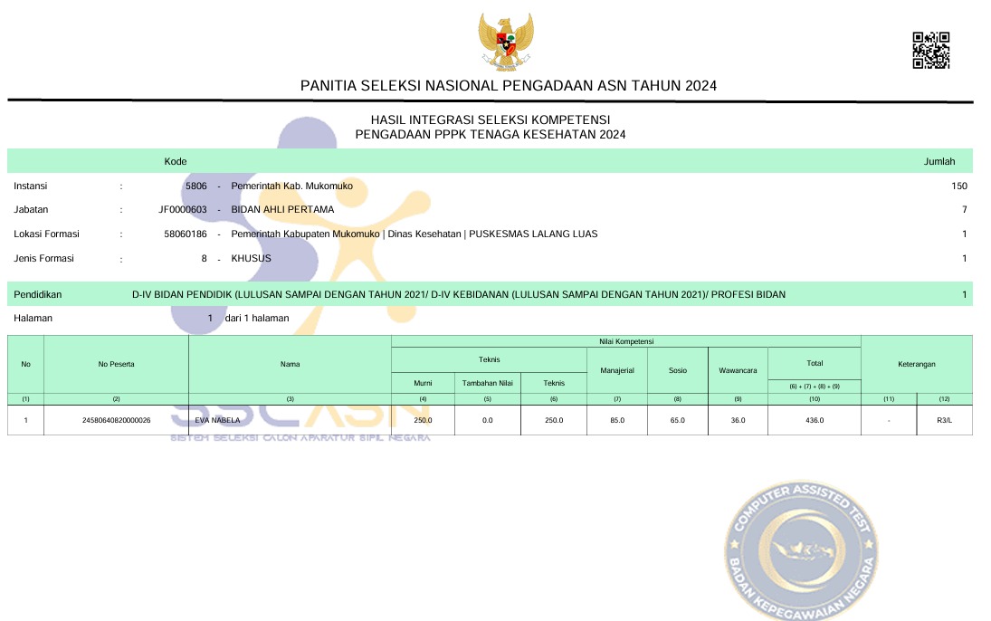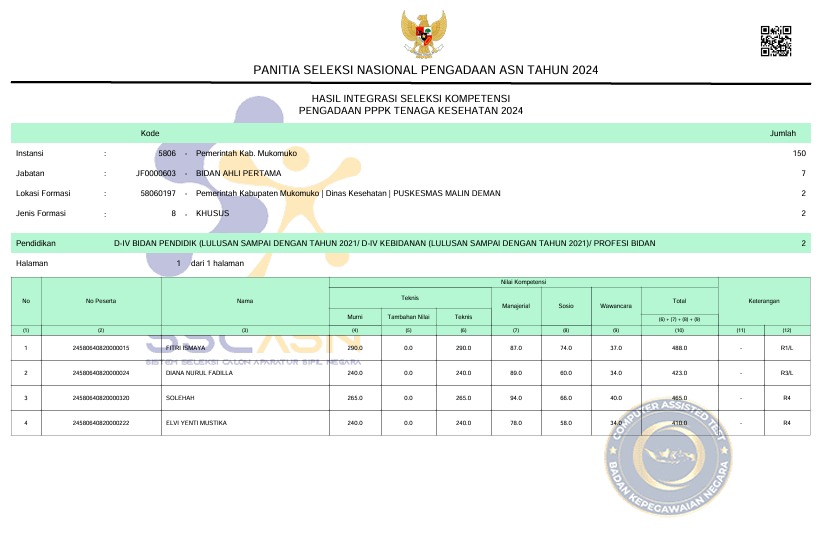 Pengumuman Kelulusan PPPK 2024 Tahap 2 di Kabupaten Mukomuko--