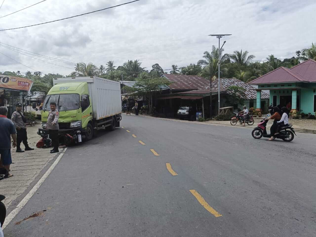 Laka maut ini melibatkan truk box Hino Dutro bernopol BD-8473-CA dan sepeda motor Honda Vario bernopol BD-8573-RB.
