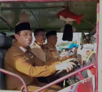 BENGKULU, RBTV.DISWAY.ID - Wali Kota Bengkulu Dedy Wahyudi melantai bersama 1.309 anak yatim piatu se-Kota Bengkulu dan nyetir odong-odong.