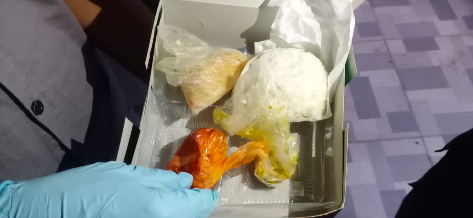 "Isinya seperti nasi kotak biasanya. Nasi putih, ikan moja atau asam manis, ayam goreng bumbu, bihun, sambal hijau, pisang dan kerupuk. Kemungkinan asalnya ada ikan tongkol itu," kata Adi.