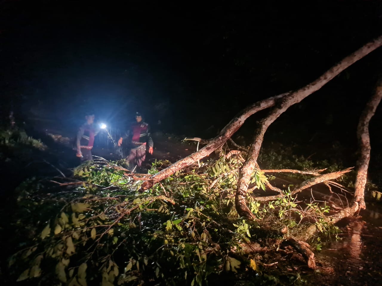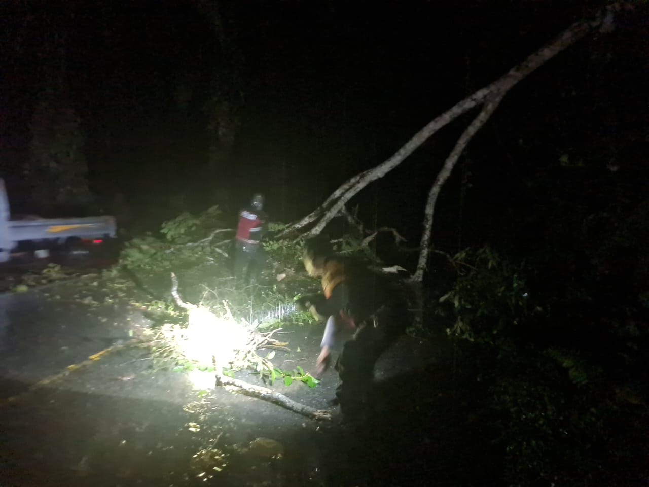 Mendapat laporan dari masyarakat adanya peristiwa itu, personel Polsek Talo yang tengah piket kemudian membantu membersihkan cabang pohon dan memotong ranting pohon tumbang yang menutup badan jalan.