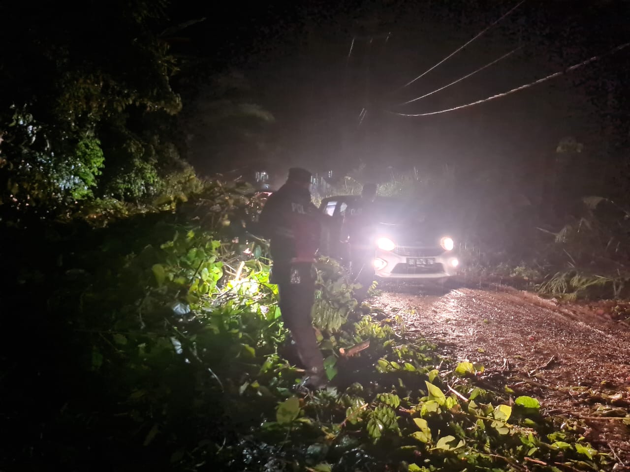 "Kemungkinan tadi karena tanah labil saat diguyur hujan deras, menyebabkan pohon tumbang. Ada 3 titik lokasi pohon tumbang tadi, 1 titik di Desa Bunut Tinggi dan 2 titik di Desa Air Teras," terang Iptu. Muhammad Hariyanto.