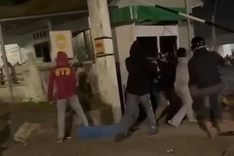 "Banyak orangnya, mungkin lebih 20 orang. Ada yang bawa samurai, balok dan juga ada yang melempar menggunakan botol kaca," ungkap Ahmad.