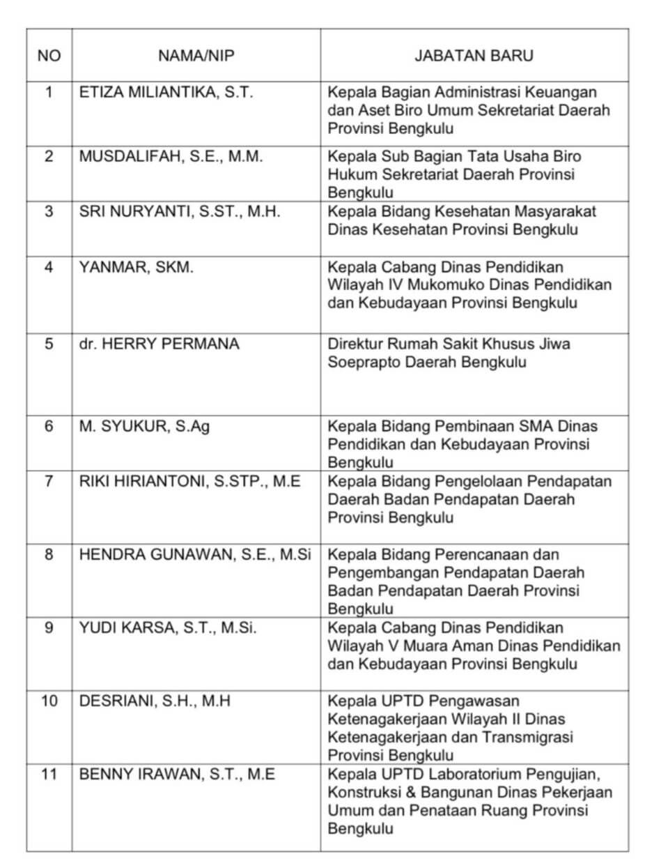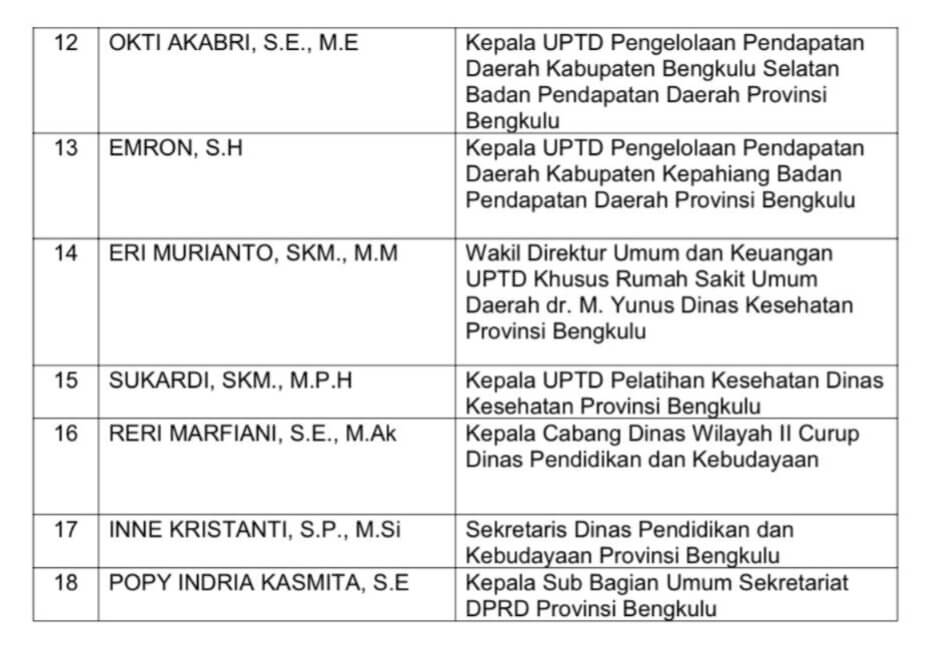 Sementara itu, Plt Badan Kepegawaian Daerah (BKD) Provinsi Bengkulu Rusmayadi Hasan mengatakan bahwasanya pelantikan ini telah sesuai dengan petunjuk BKN.