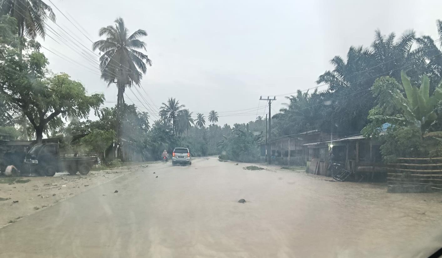 Banjir juga terjadi di jalan Kabupaten yang berada di Kecamatan Luas menuju Muara Sahung yang berada di Desa Tuguk menuju Desa Benua Ratu.
