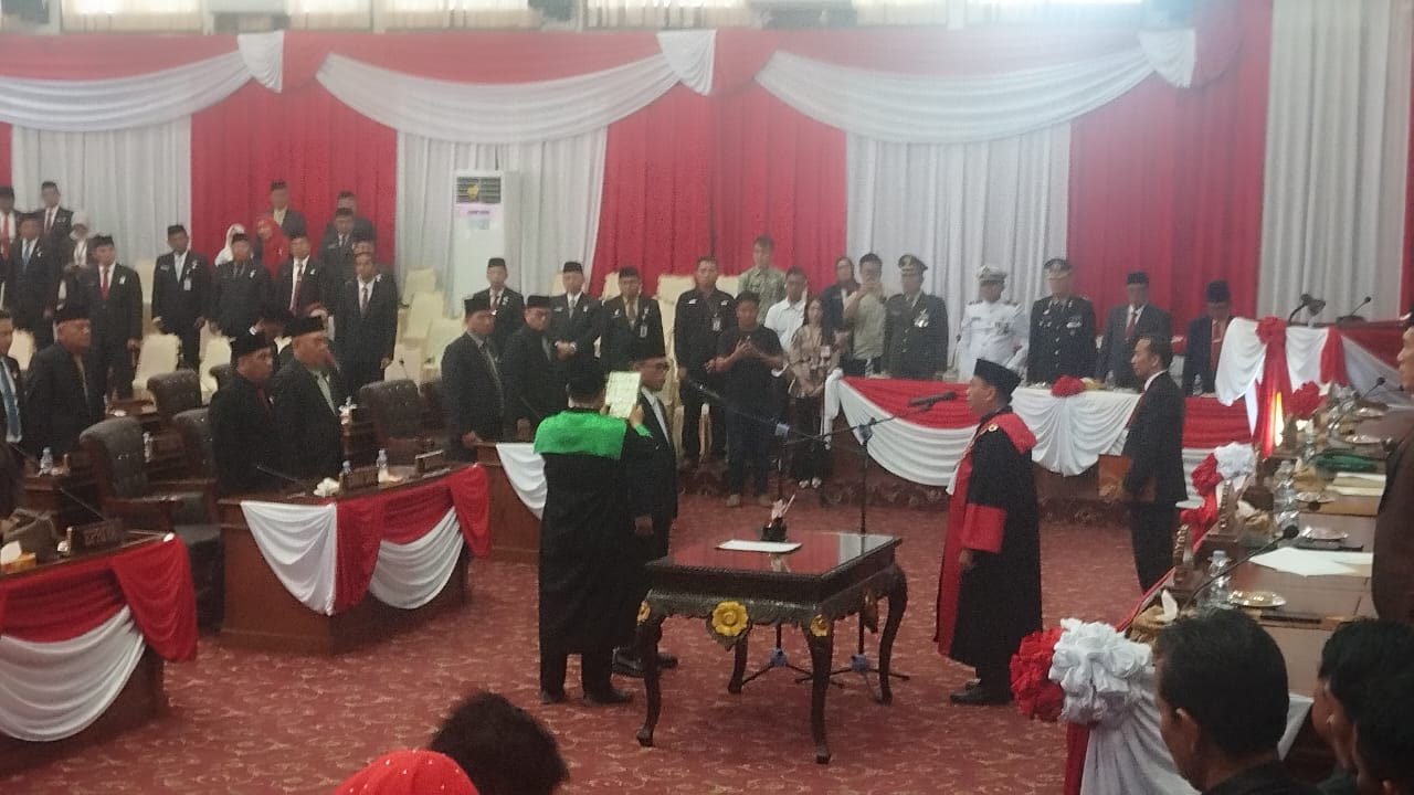 BENGKULU, RBTV.DISWAY.ID - Penjabat Sekretaris Daerah (Pj Sekda) Provinsi Bengkulu, Herwan Antoni, menghadiri Rapat Paripurna DPRD Provinsi Bengkulu dengan agenda Peresmian Pengucapan Sumpah/Janji Pelantikan Teuku Zulkarnain sebagai Waka I DPRD Provinsi Bengkulu Sisa Masa Jabatan 2024–2029, yang digelar pada Kamis (7/8) pagi di DPRD Provinsi Bengkulu