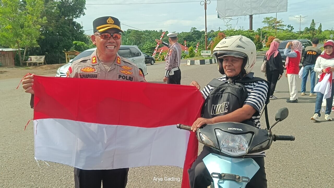 Melalui kegiatan ini, Wakil Bupati Seluma Drs. Gustianto dan Kapolres Seluma AKBP. Bonar Ricardo P. Pakpahan dan pejabat eselon Seluma berkesempatan membagikan bendera kepada masyarakat non ASN yang melintas di Simpang 6 Seluma.