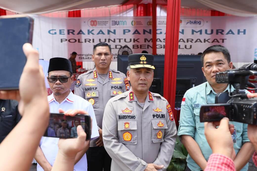 "Hari ini kami menyalurkan beras SPHP dari Bulog dengan harga yang lebih murah. Harapan kami, beras ini tersalurkan kepada warga dan dapat membantu mengatasi kelangkaan yang ada di pasar," kata Kapolda Bengkulu, Irjen Pol. Mardiyono.