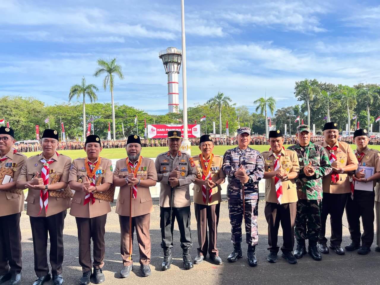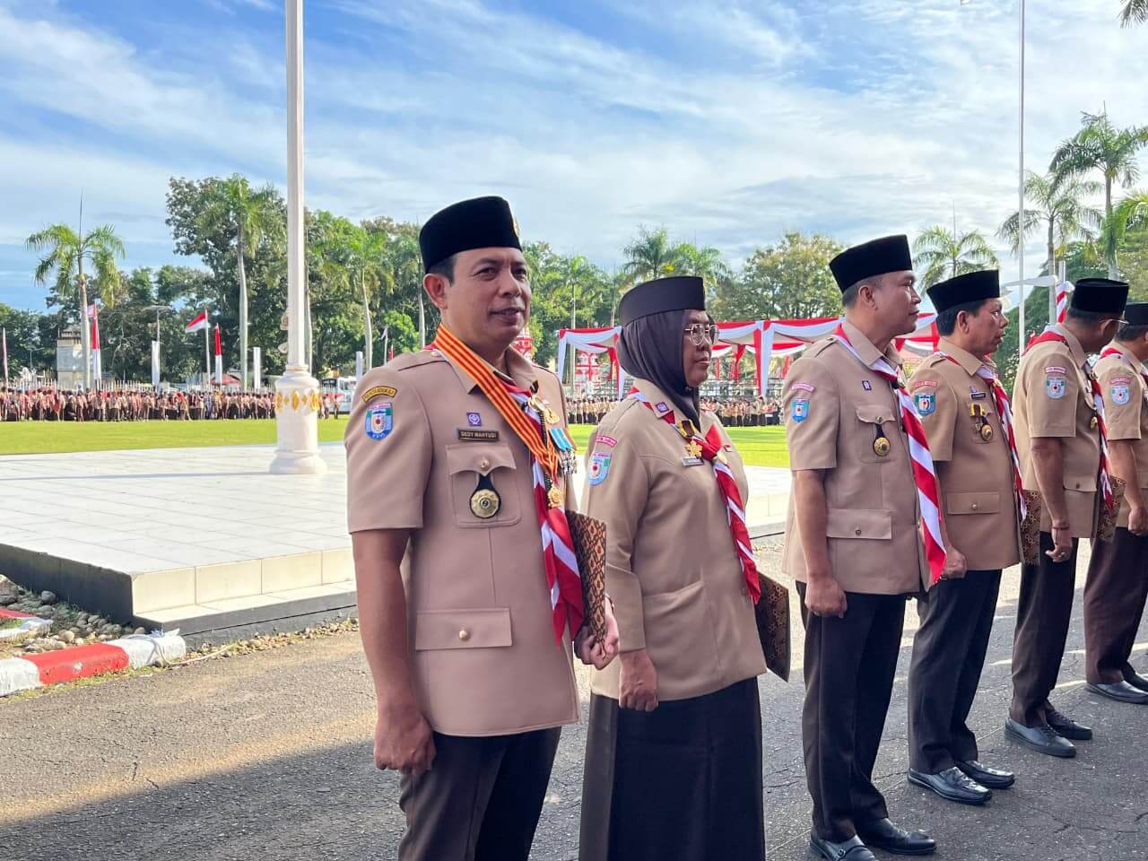 HUT Pramuka ke-64: Gubernur Helmi Hasan Anugerahkan Lencana Melati Kepada Wali Kota Dedy Wahyudi