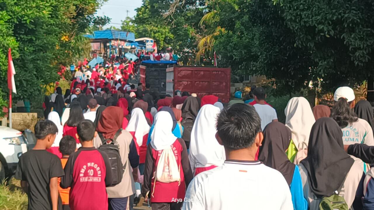 SELUMA, RBTV.DISWAY.ID - Ratusan masyarakat di wilayah Kecamatan Lubuk Sandi tumpah ruah ke jalan raya untuk berpartisipasi meramaikan jalan santai dalam rangka memeriahkan HUT RI ke 80 tahun.