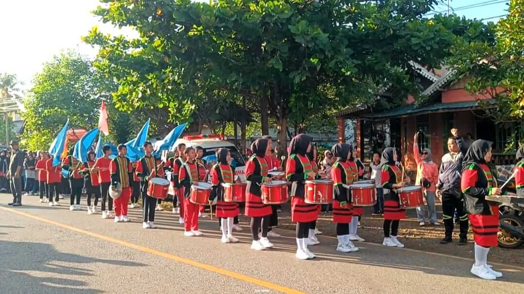 Tidak hanya itu, atraksi drumband MTs Negeri 1 Seluma menambah meriahnya jalan santai ini.
