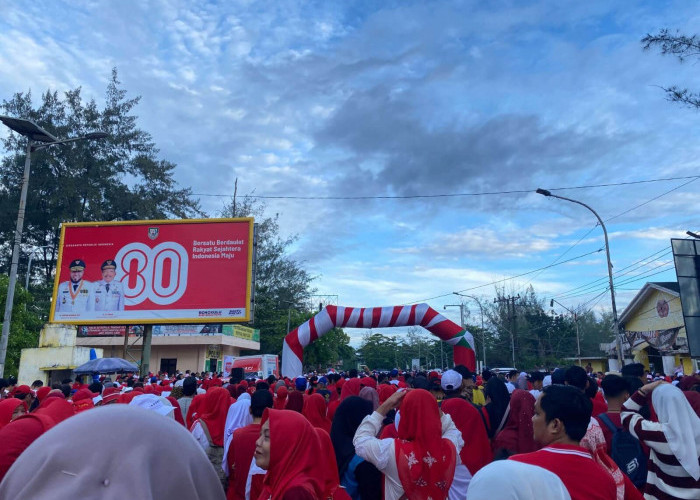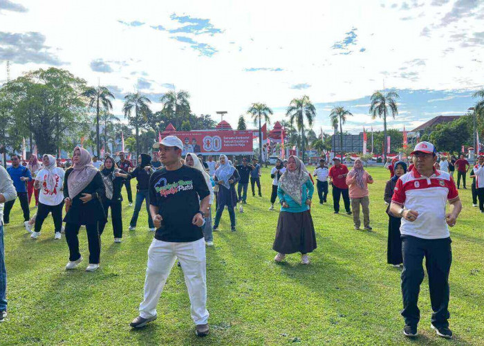 Tumpah Ruah, Ratusan Warga Lubuk Sandi Kabupaten Seluma Meriahkan Jalan Santai HUT RI ke-80