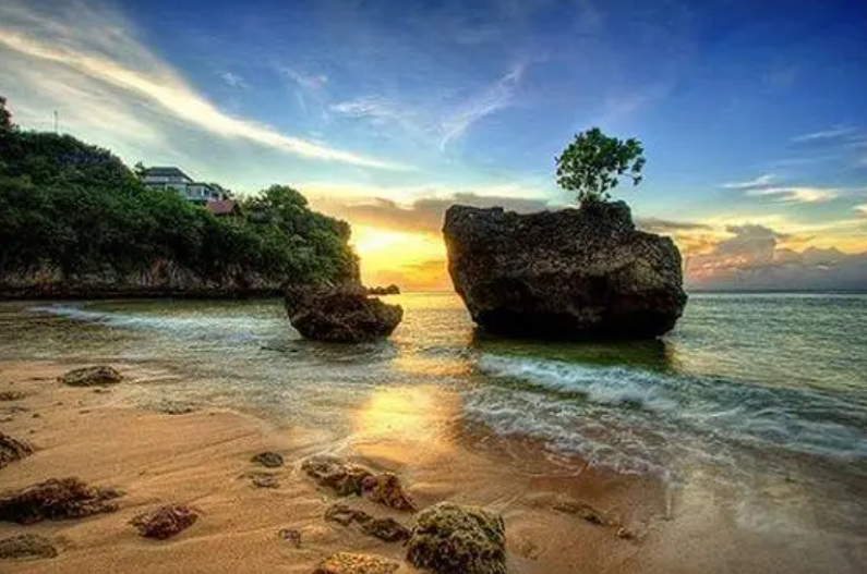 This beach was used as a location for Julia Roberts' film "Eat, Pray, Love." It's filled with large coral reefs, making it even more beautiful.