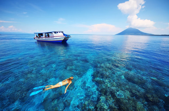 The best view is the sheer, vertical coral reefs that jut down to depths of 25-50 meters. Besides coral reefs, there are also dozens of species of fish with equally beautiful patterns. Bunaken Marine Park also offers 20 of the best dive spots. For those of you who enjoy diving, don't miss the experience of diving in this most beautiful marine park in Indonesia.