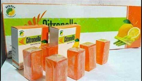 Sabun Bidoyi Citronella ini diciptakan dengan bahan-bahan herbal, sehingga berkhasiat mampu mengatasi berbagai permasalah kulit tubuh Anda termasuk panu. Dengan kandungan utamanya, yaitu minyak sereh, sabun ini mampu mengatasi jerawat secara baik.