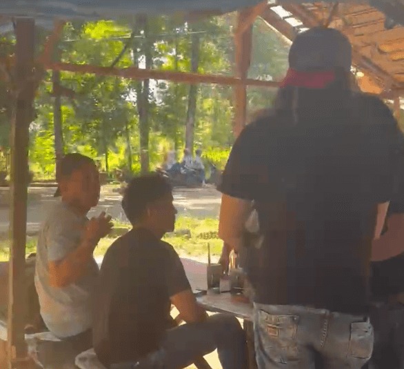 Pelaku yang sedang asik ngadem sambil minum es teh di Taman Rejama ini hanya bisa terdiam dan tidak menyadari saat tim gabungan satu persatu mendekati lapak pedagang tempat dirinya duduk memesan makanan.