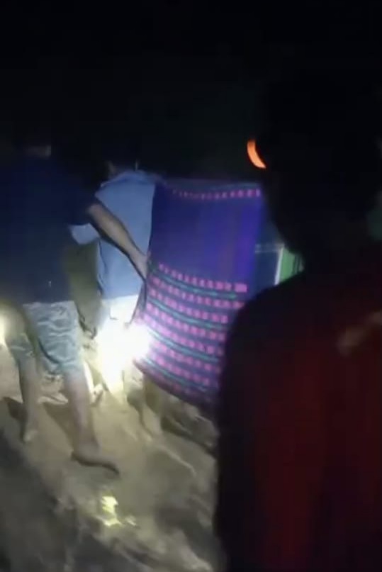 "Kejadian malam kemarin, jalan itukan buruk masih tanah dan juga tanjakan. Jadi sulit untuk diakses menggunkan kendaraan jadi keluarga dan warga ikut berjibaku menandu jenazah ke rumah duka," sampai Kades